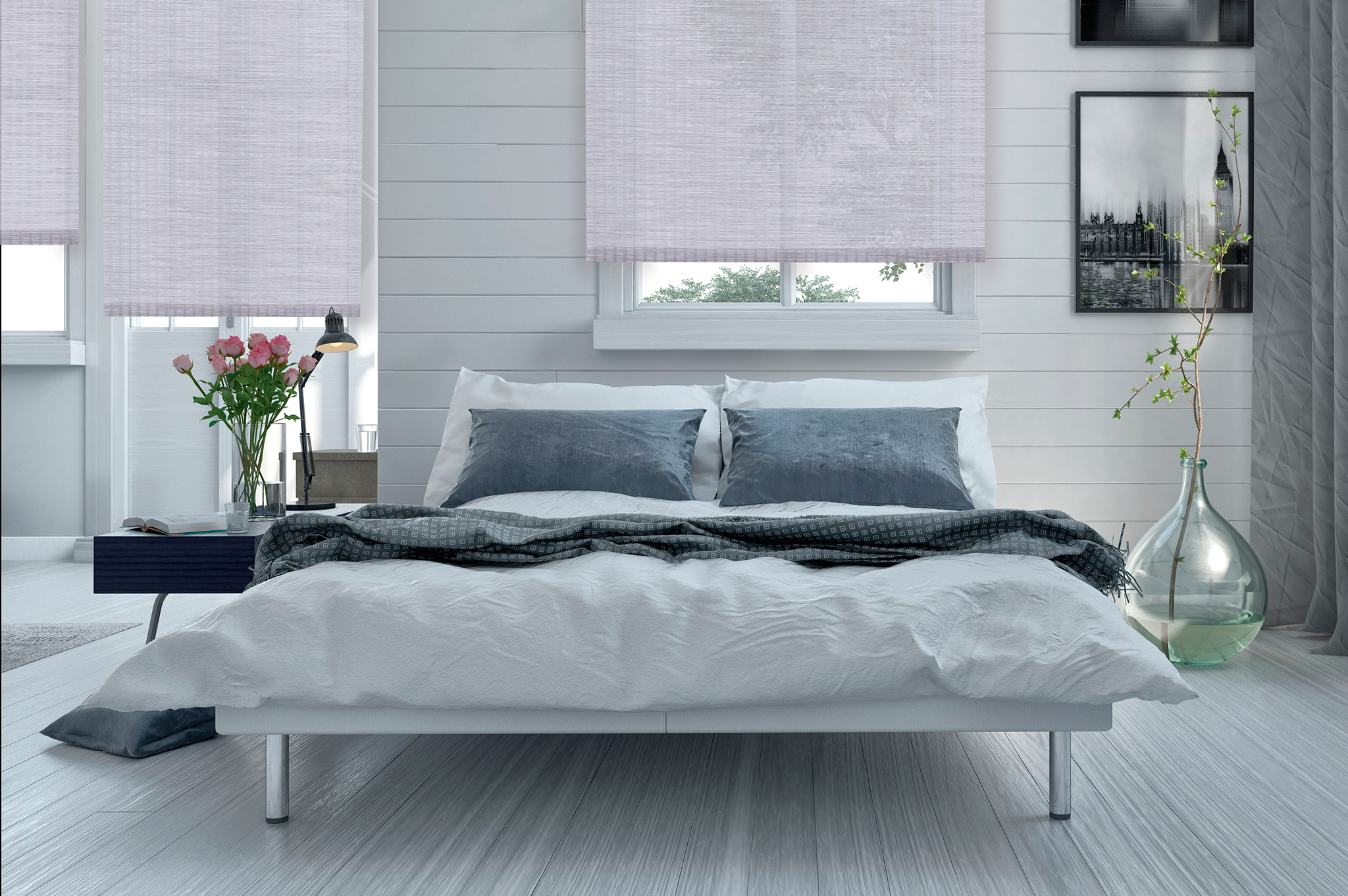 shades are installed outside the window frame, covering an area bigger than the window size.