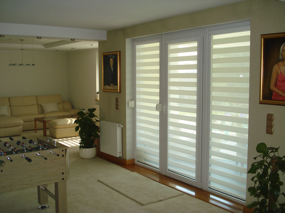 Sheer Elegance brings versatility to Warrington Dual Shades. A contemporary, trendy window covering solution that has grown fast. Allowing light and privacy control, while maintaining decorative appeal and simplicity. Dual fabric panels can be fully raised or lowered. When fully lowered, horizontal bands can be controlled to your preferences of privacy, room darkening, or light in your home