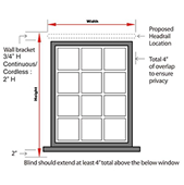 Measure the exact height of the inside edges of the window frame from three different places; at the left, center, and right to the nearest 1/8". Record the longest of the three measurements.